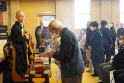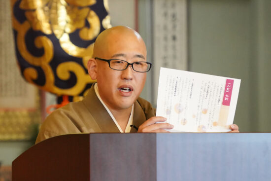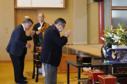 彼岸とは、私たちがいきるこの世界「此岸(しがん)」に対し、「かの岸」つまり仏様の教えに導かれて安らかな生活をおくることができる世界のこと。お彼岸の期間中は仏様が示された「六波羅蜜」をという幸せになるための実戦徳目を実行し、安らぎの世界である彼岸に渡ることを願い、ご先祖様に感謝の思いを込めて供養を行う期間であると説明いただいた後、「今を生きる」ことをテーマに、東日本大震災でご自身が県外で帰宅難民となった際に現地の方々から頂いた恩や経験について語っていただき、「一日一日を大切に生きていきましょう」とお話しいただきました。