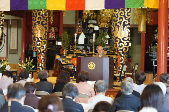 お説教師として常楽寺の中本慈宣(じせん)ご住職にお越しいただき、お彼岸と人生七訓(ななくん)についてお話しいただきました。